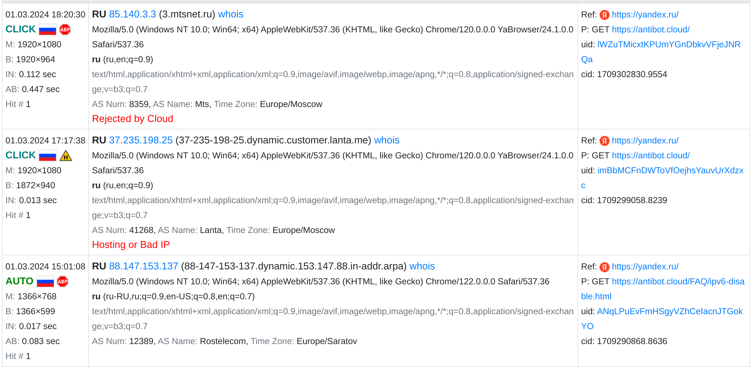 STOP - посетители, которые не прошли антибот проверку.
